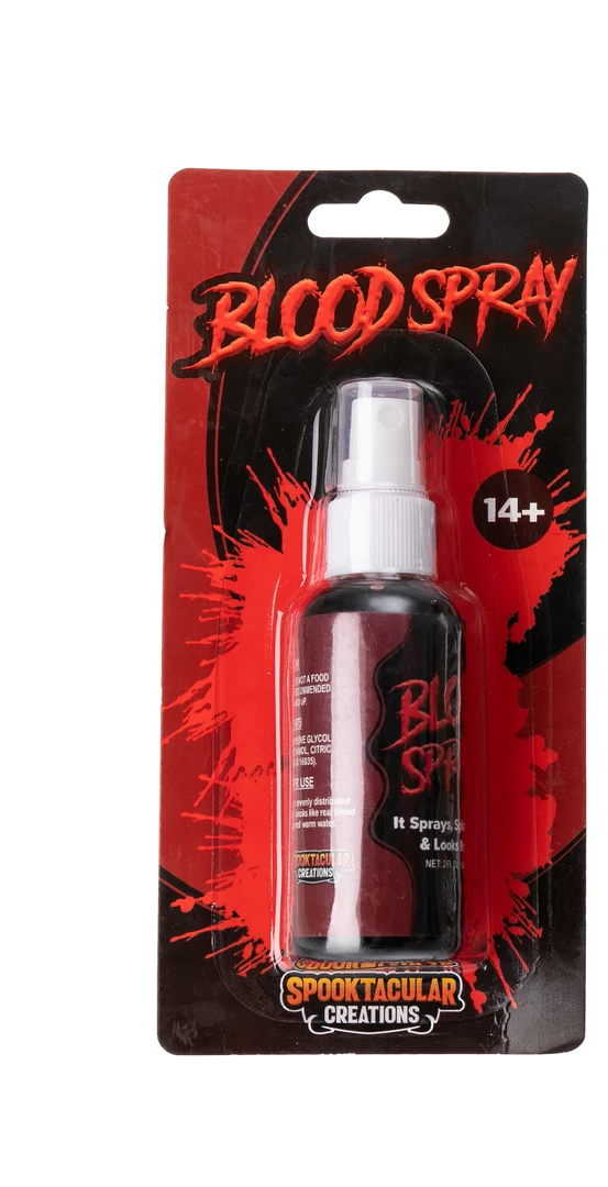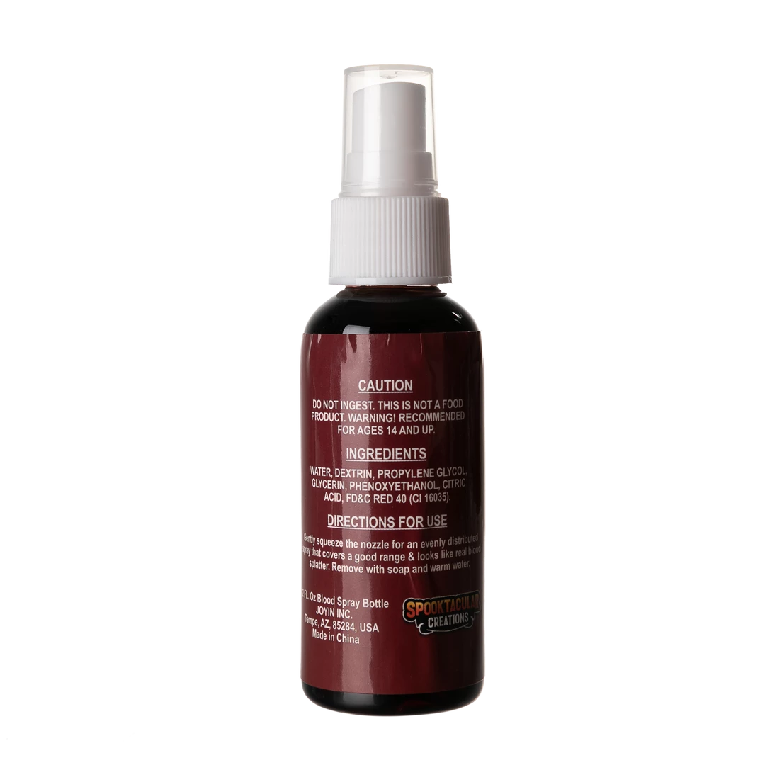 • Comprehensive Set. 2 oz Fake Blood Spray. Our fake blood features an incredibly vibrant blood red color that looks and flows like the real thing. It is great for creating frightfully realistic special effects.