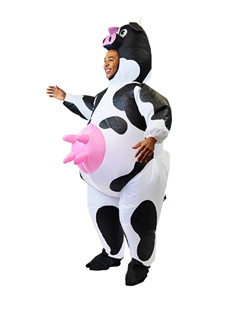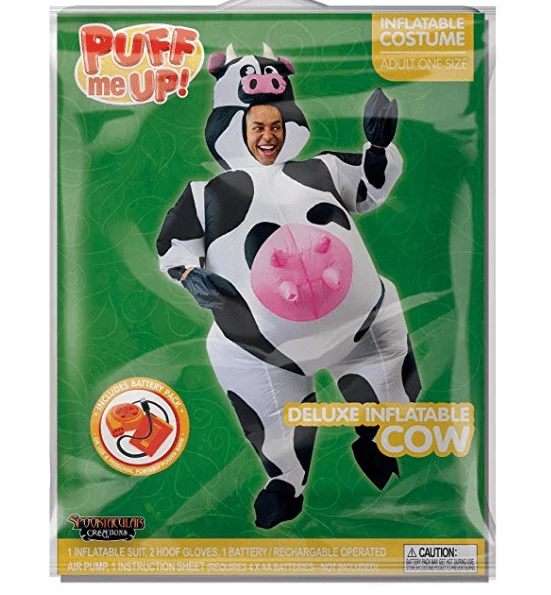 - Includes one Inflatable Cow Costume, and an air pump.