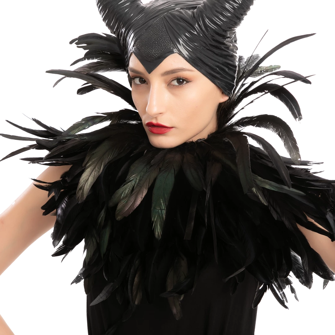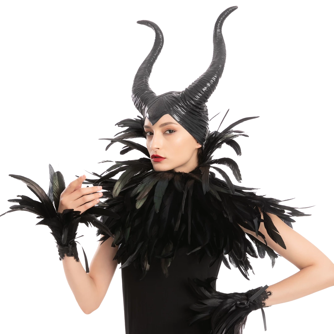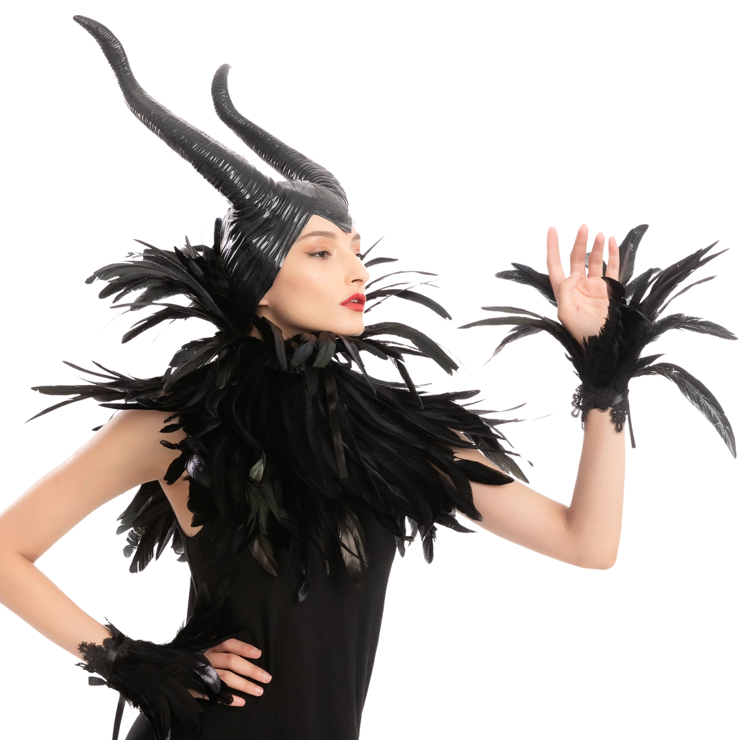 • The Black Queen Accessories Set includes 1 horn, 1 feather shawl & 1 feather cuff.
