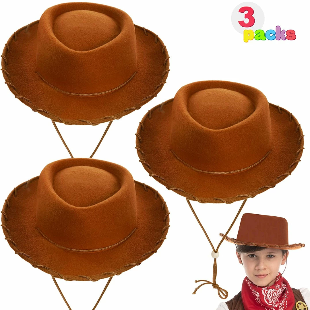 Spooktacular Creations Brown Felt Cowboy Hats For Kids, 3 Pack Child Costumes