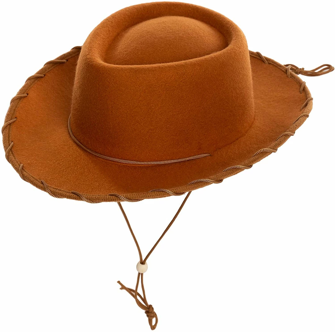 • Super value pack for Halloween role play party costume. The hat features a felt texture. This set comes with 3 brown felt cowboy hats.