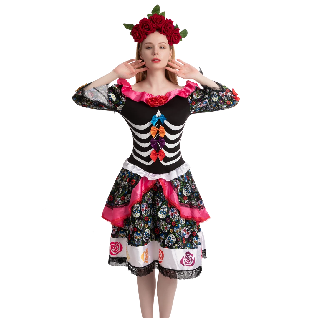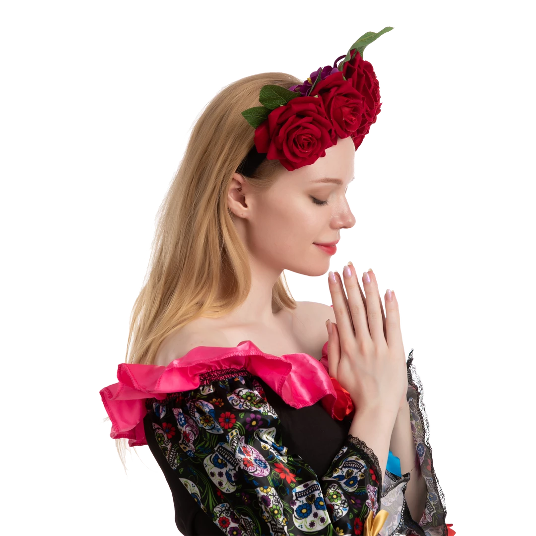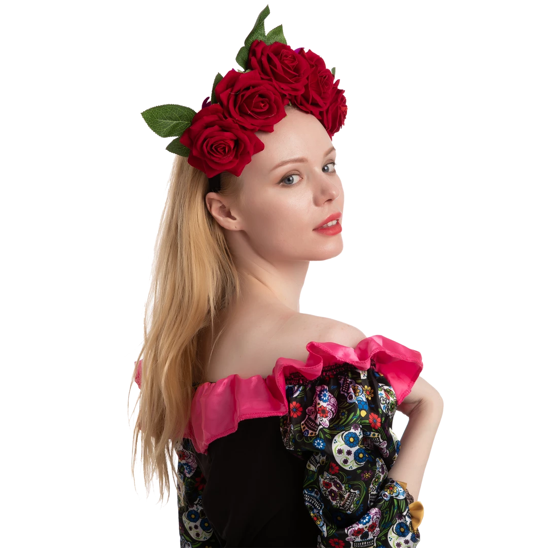• Includes a headband with rose and 3pcs Day of the Dead face tattoos.