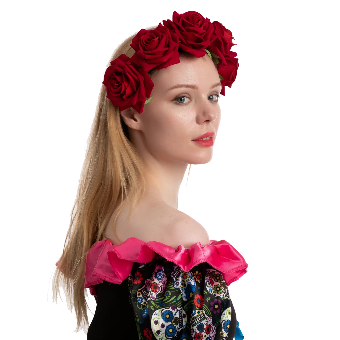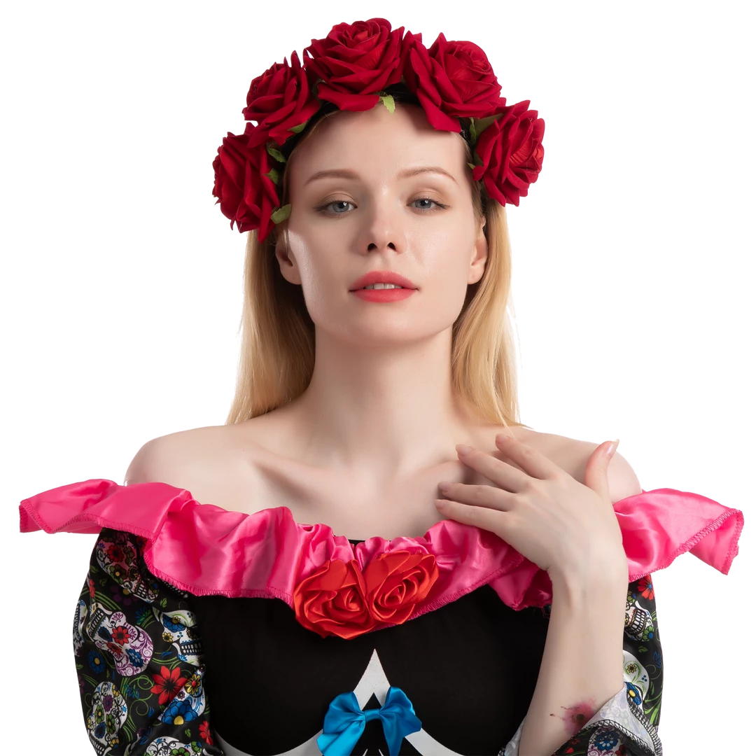 • This Day of the Dead hair garland elastic headband with flowers and face Halloween tattoo set includes an elastic headband and 3pcs face tattoo.