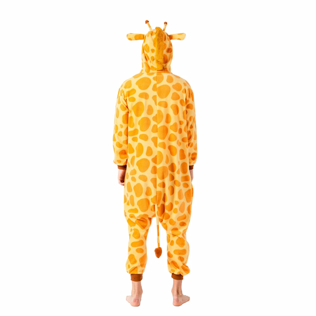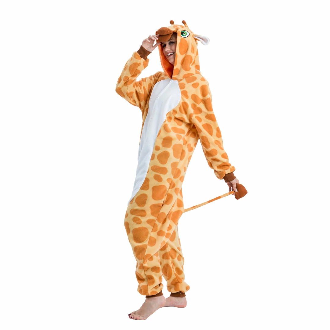 - Deluxe Version of Giraffe Pajamas One Piece Plush Cosplay Animal Costume Onesie. Adult Size. Made with High-Quality Plush Fleece Materials.