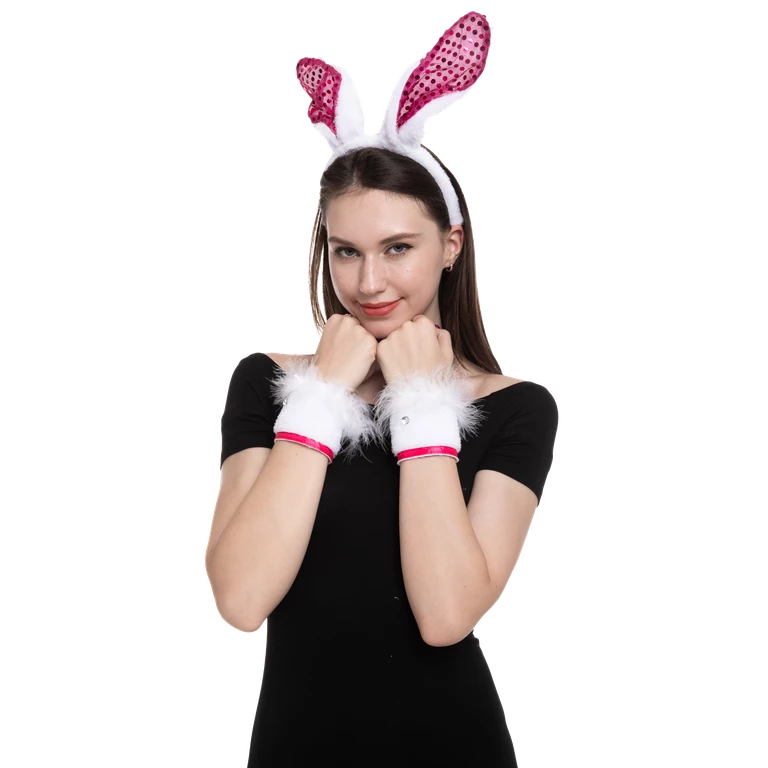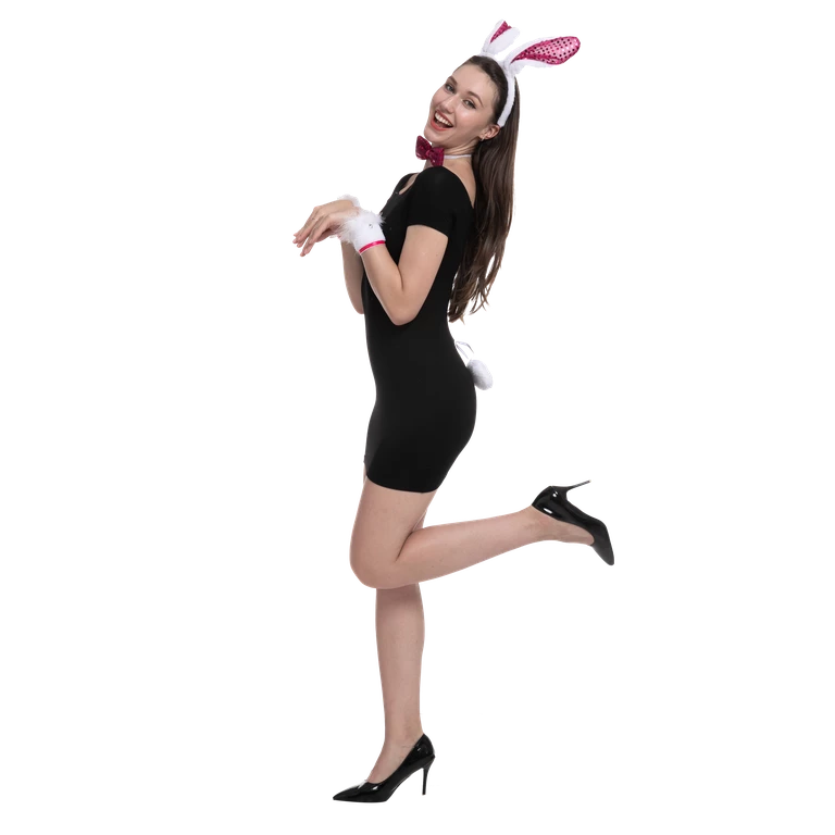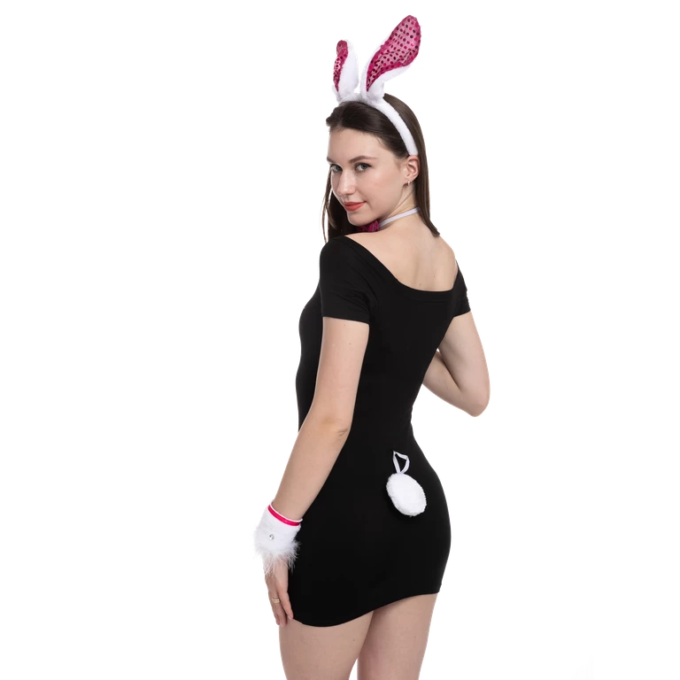 - Bunny Costume Set includes white bunny ears headband, bow tie, bunny tail, and arm cuffs. Fits adult and kids.