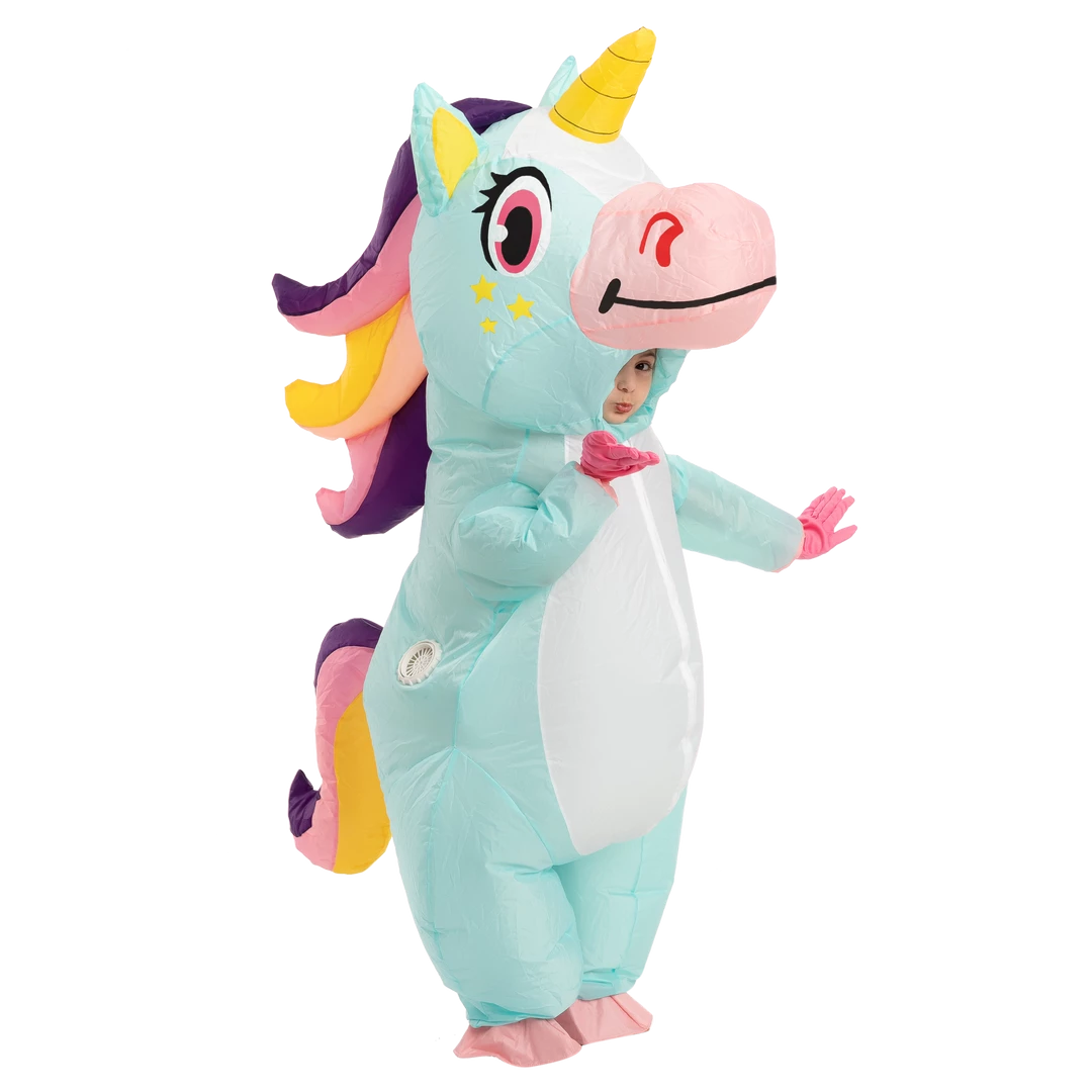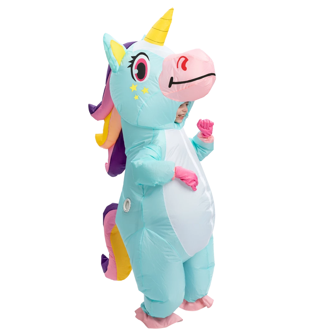 - Includes one Blue Unicorn Full Body Inflatable Costume, and an air pump.
