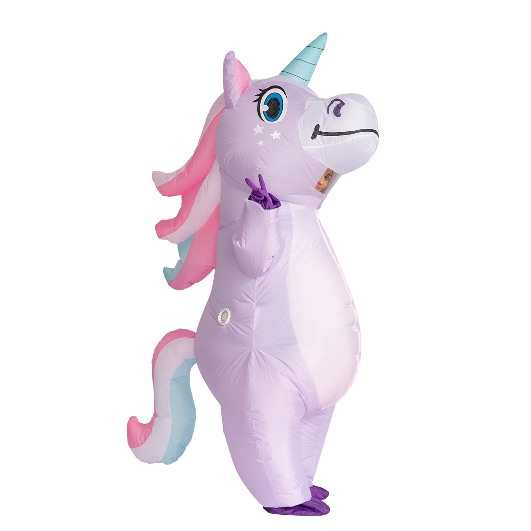 - Includes one Purple Unicorn Full Body Inflatable Costume, and an air pump.