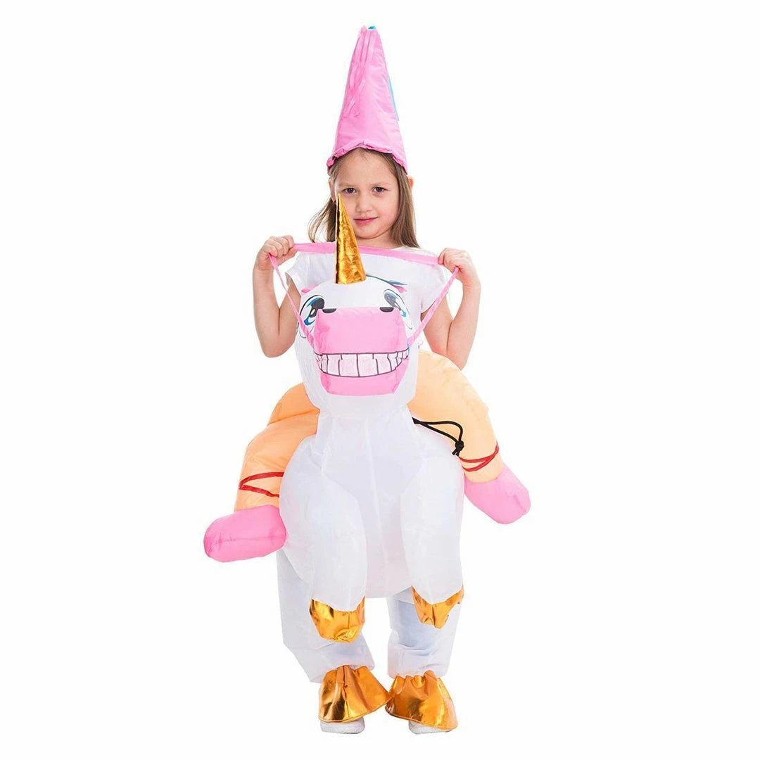 - Trick or Treat this Halloween like royalty with this Inflatable Ride-On Unicorn Princess Costume! Have a fun time with your majestic unicorn buddy and seize the day with any magical activity.