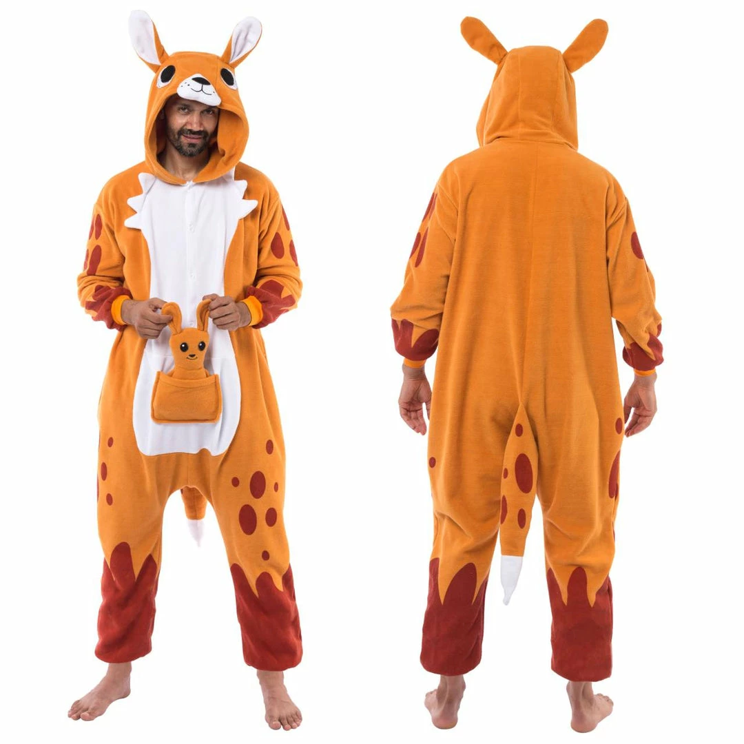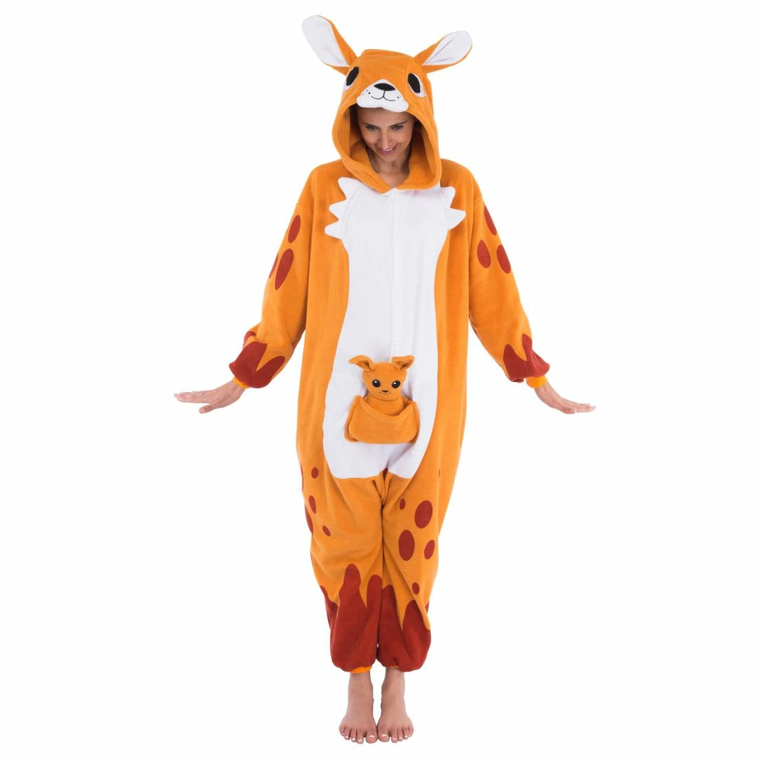 - Deluxe version of kangaroo pajamas one piece plush cosplay animal costume onesie from Spooktacular Creations. Adult size. Made with high-quality plush fleece materials.