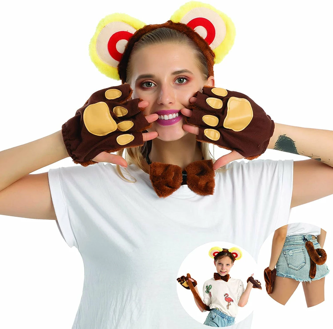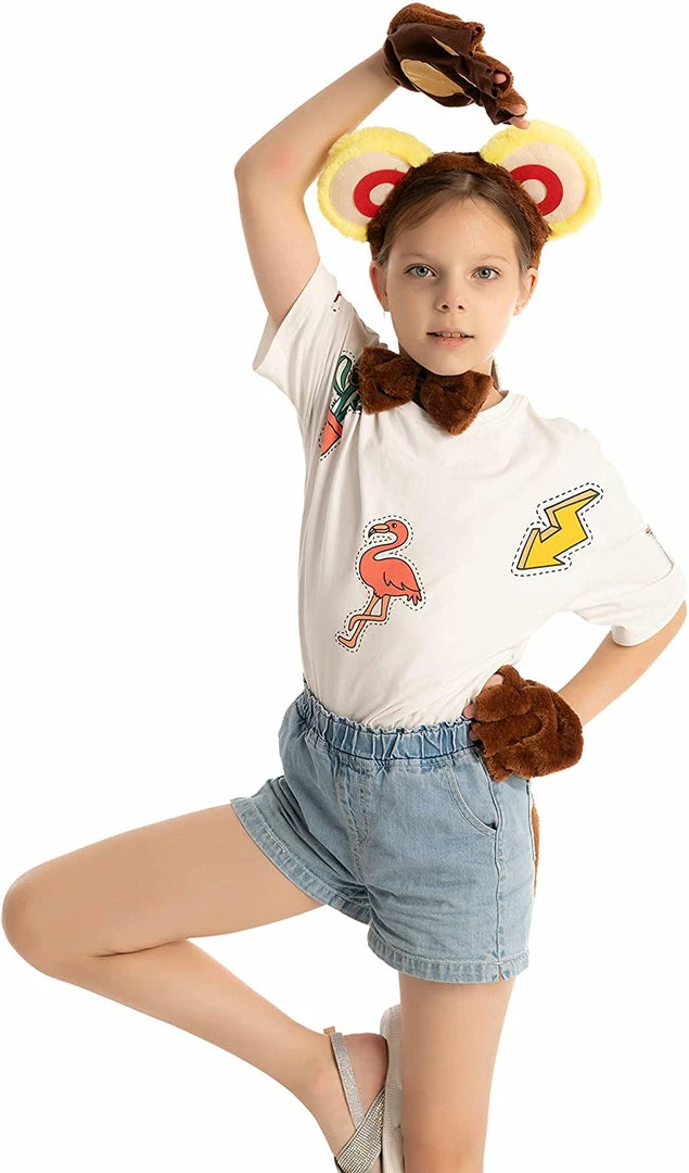 • Monkey Costume Accessories set includes monkey headband, bow tie, gloves and tail.