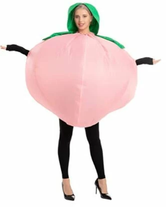 - Includes Peach and Eggplant Inflatable Couple Costumes (separately), and 2 air pumps.