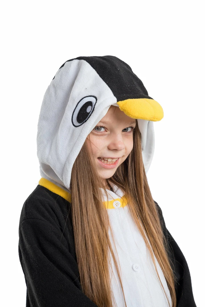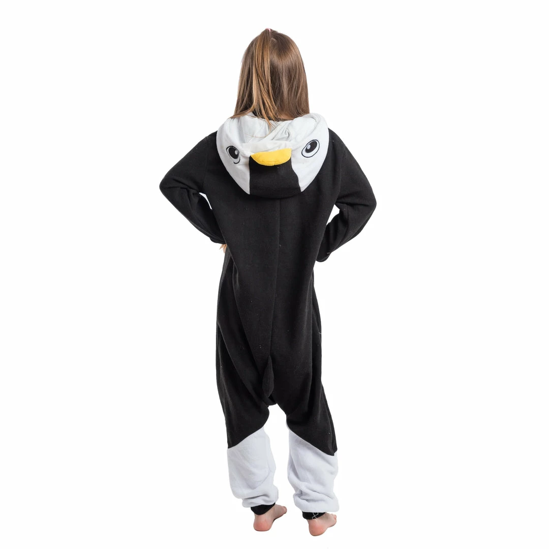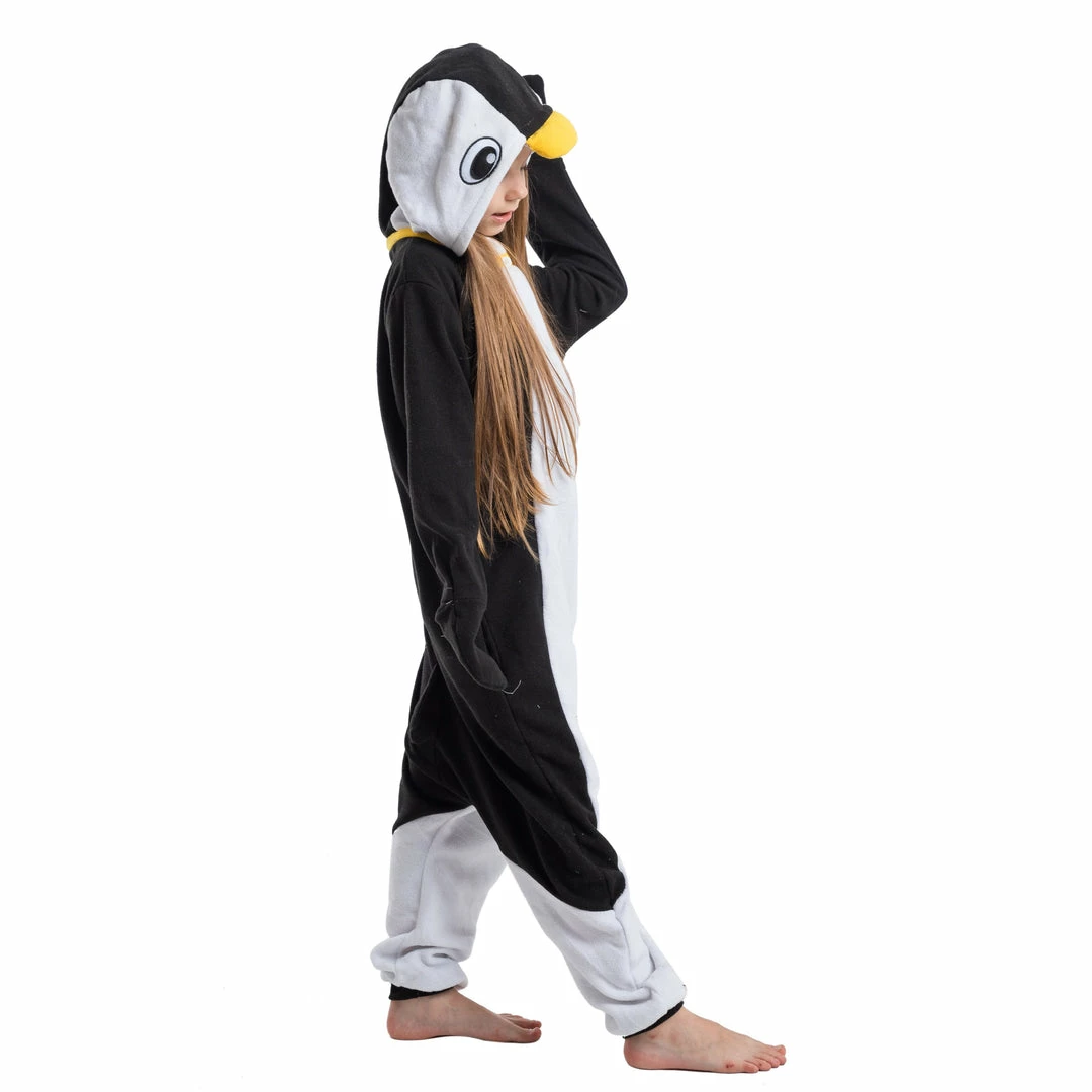 - Deluxe Version of Penguin Pajamas One Piece Plush Cosplay Animal Costume Onesie. Child Size. Made with High-Quality Plush Fleece Materials.