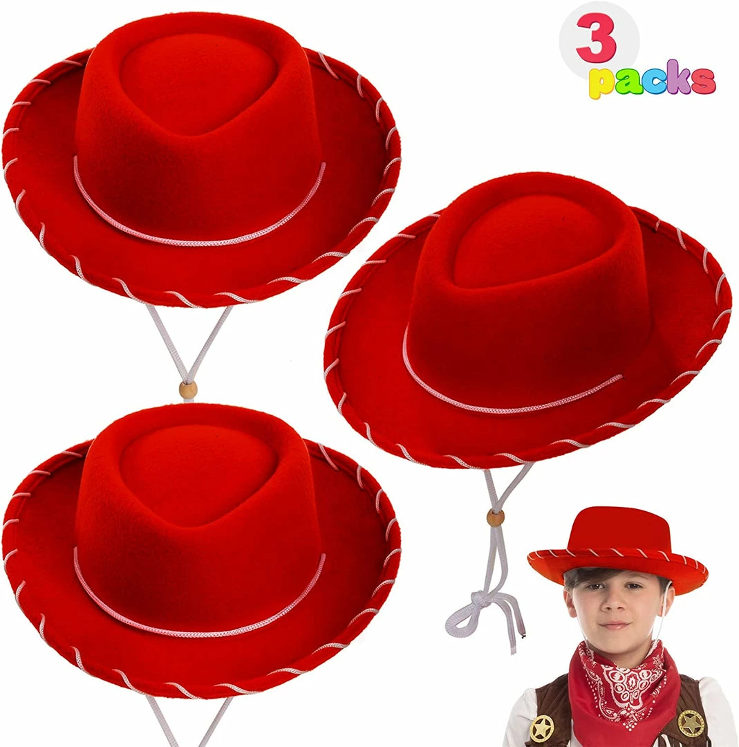 Spooktacular Creations Red Felt Cowboy Hats For Kids Cosplay Accessories, 3 Pack
