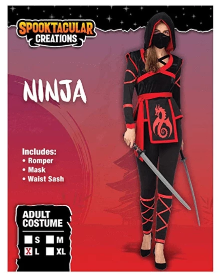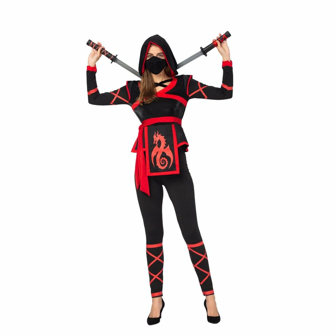 - Role-Playing Ninja Outfit Dragon Costume for Adult Includes Ninja Romper, Ninja Mask, and Waist Sash. Ninja Swords NOT INCLUDED.
