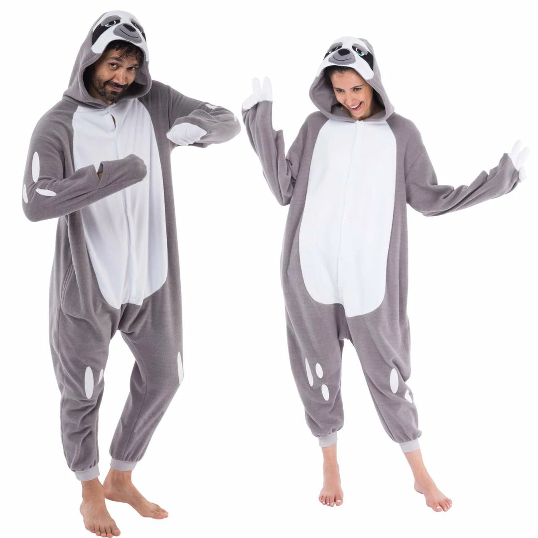 - Deluxe Version of Sloth Pajamas One Piece Plush Cosplay Animal Costume Onesie. Adult Size. Made with High-Quality Plush Fleece Materials.